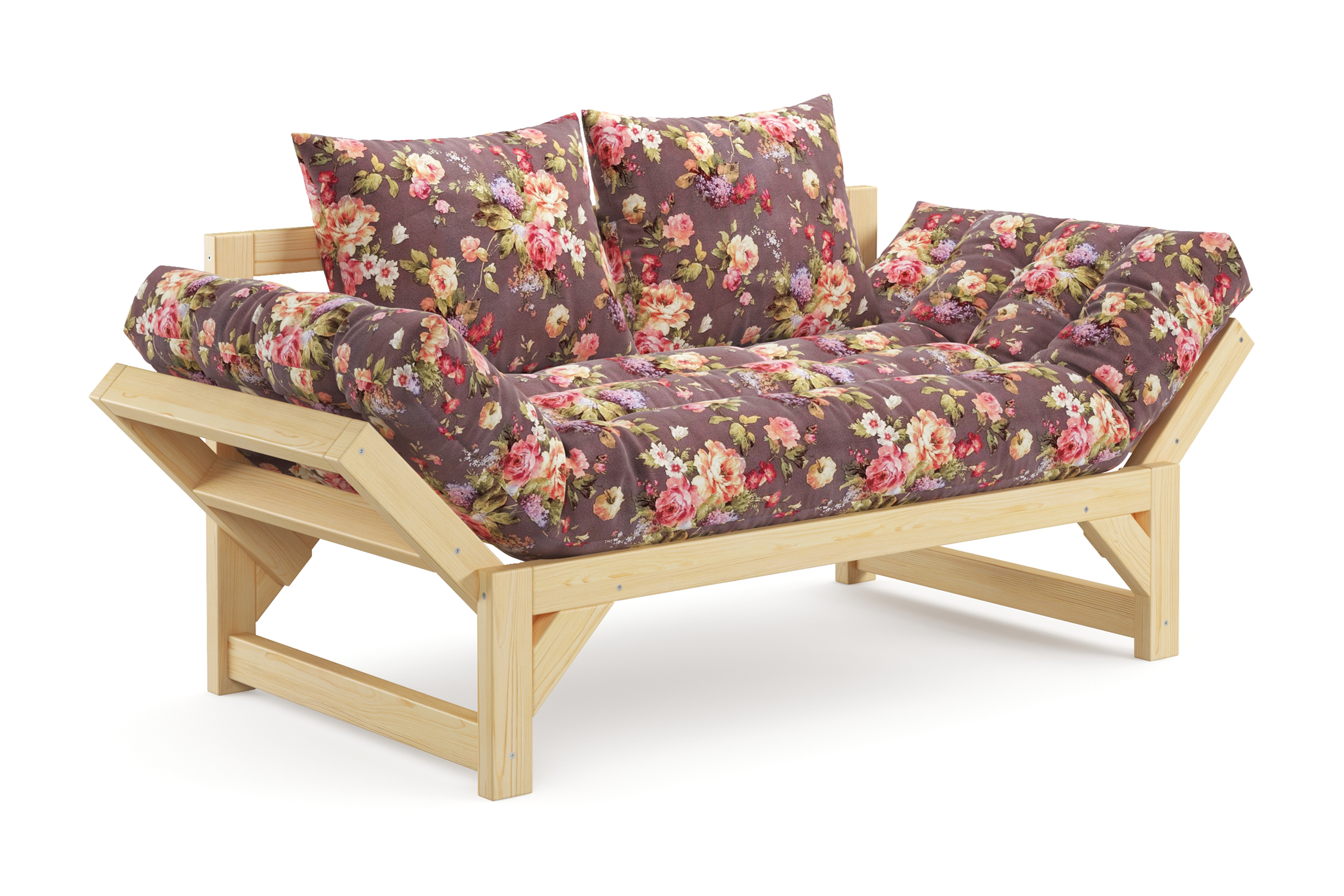 Максимальная нагрузка — 220 кг. Ширина деревянной спинки 130 см. Приспинные подушки, представленные на фото, входят в комплект. Декоративные приобретаются отдельно. Диван продается без лакокрасочного покрытия, под самостоятельную покраску. Высота сиденья без матраса - 31 см, с матрасом 46 см.